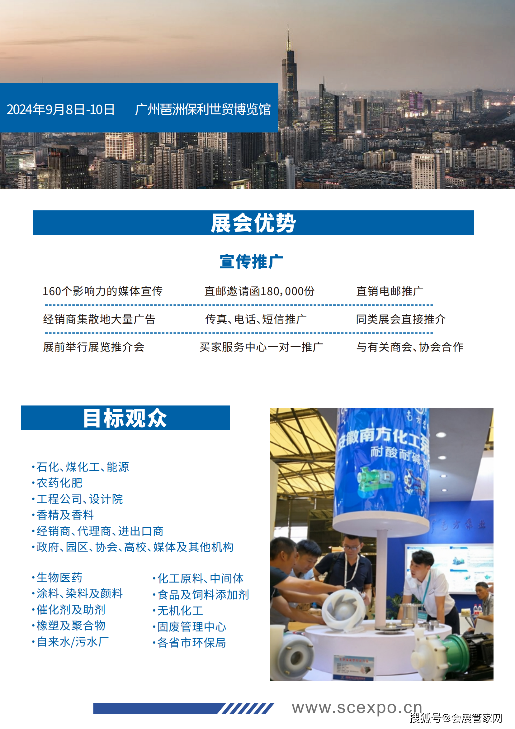 2024广州国际化工装备展将于2024年9月8日—10日在广州琶洲保利世贸博览馆举办,预计参展企业500多家,展览面积30,000平方米,专业观众突破20,000人。主办方将全力打造“一年一度的国际化工装备大会”,为化工企业提供综合解决方案。