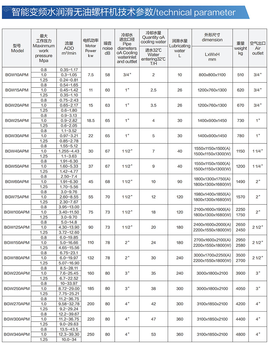 相较于传统活塞式无油空压机的振动大、噪音高、泄露量大、寿命短、效率低等劣势,澳沃德智能变频水润滑无油螺杆机具有结构紧凑、整机工作效率高、噪音低、振动小、维护方便、运行成本低,空气质量好,同时 该系列机器采用微电脑控制系统,整机设有压力、温度、超载等多重保护性能。